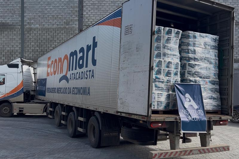 Numa frente, o Instituto Alok doou inicialmente 9 toneladas de suprimentos essenciais para apoiar diretamente as famílias afetadas pela tragédia climática.