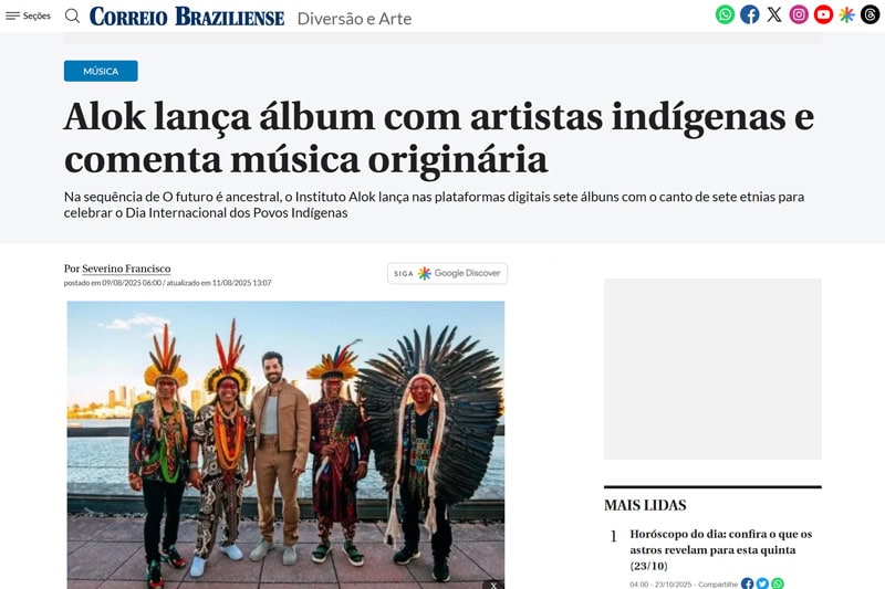 É nesse contexto que nasce a Coleção Som Nativo, lançada pelo Instituto Alok em parceria com artistas indígenas de diversas etnias brasileiras.