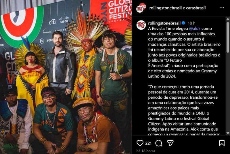 O artista da música eletrônica é também defensor das lutas dos povos originários e tem dado visibilidade a figuras indígenas nas redes sociais.